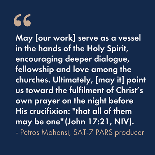 “By God’s providence, all of the Christian churches – Eastern and Western, Catholic, Orthodox, and Protestant – are celebrating the glorious resurrection of Christ on the same day [this year],” says SAT-7 PARS producer Petros Mohseni. “In a world marked by division, confusion, and disconnection, we as the children of God are called to rise above barriers and proclaim the Good News of salvation with one voice, one faith, and one heart.”