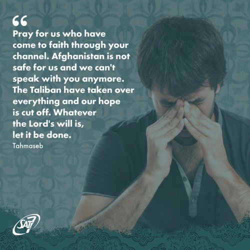 Before the Taliban took control of Afghanistan in August 2021, SAT-7 PARS was receiving an increased number of interactions from people in Afghanistan, sharing their messages of fear, worry, and despair and asking SAT-7 to continue to be a voice for all the people of Afghanistan. Since the takeover, there has been an anticipated reduced number of viewers being in direct contact with SAT-7, but there are still some Afghans taking the risk to be in touch to share what is happening in their lives and to ask for prayer support.