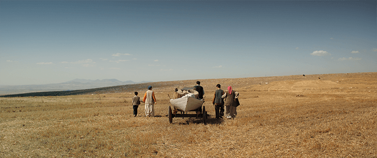 Yakamoz takes place in Gelveri, in the Cappadocia region of Türkiye, and focuses on two families, one Turkish, one Greek, who are caught up in the exchange. The film culminates with the emotional departure of the Greek Christian families from the village, which happened on August 6, 1924. Turkish fisherman Ismail and his family have been sent ahead of this date from Kavala in Greece to Gelveri, and because of their early arrival, they have to live in the same house with Greek potter Dimitri and his family. “Yakamoz” is the name of Ismail’s boat in the film, an object that comes to represent his dislocation as a fisherman sent to a landlocked village. The word translates as “sea sparkle,” which alludes to the coming and going of rootless people.