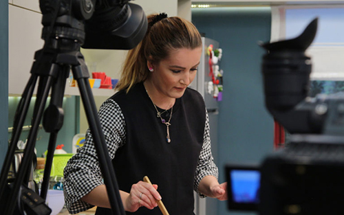 Presenter Şemsa Deniz on the set of the SAT-7 TÜRK live show Homemade.